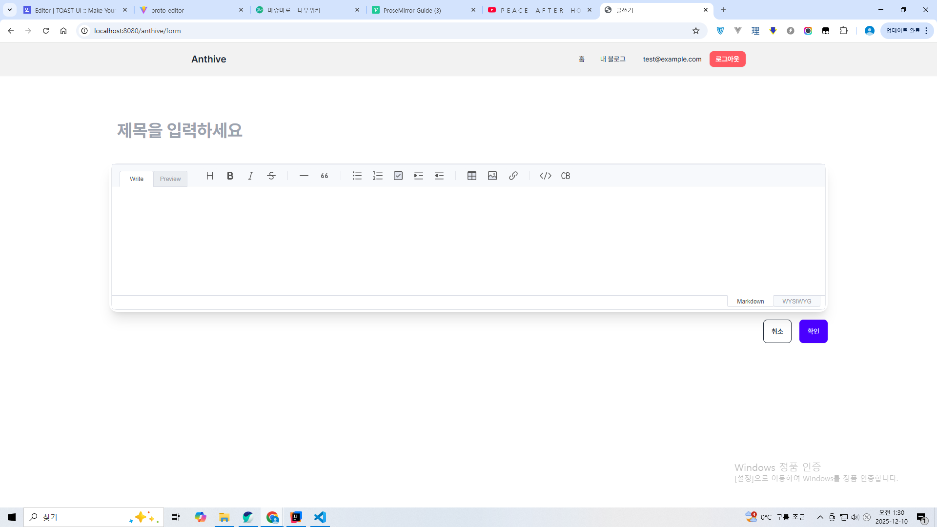 이건 글 쓰기 화면.